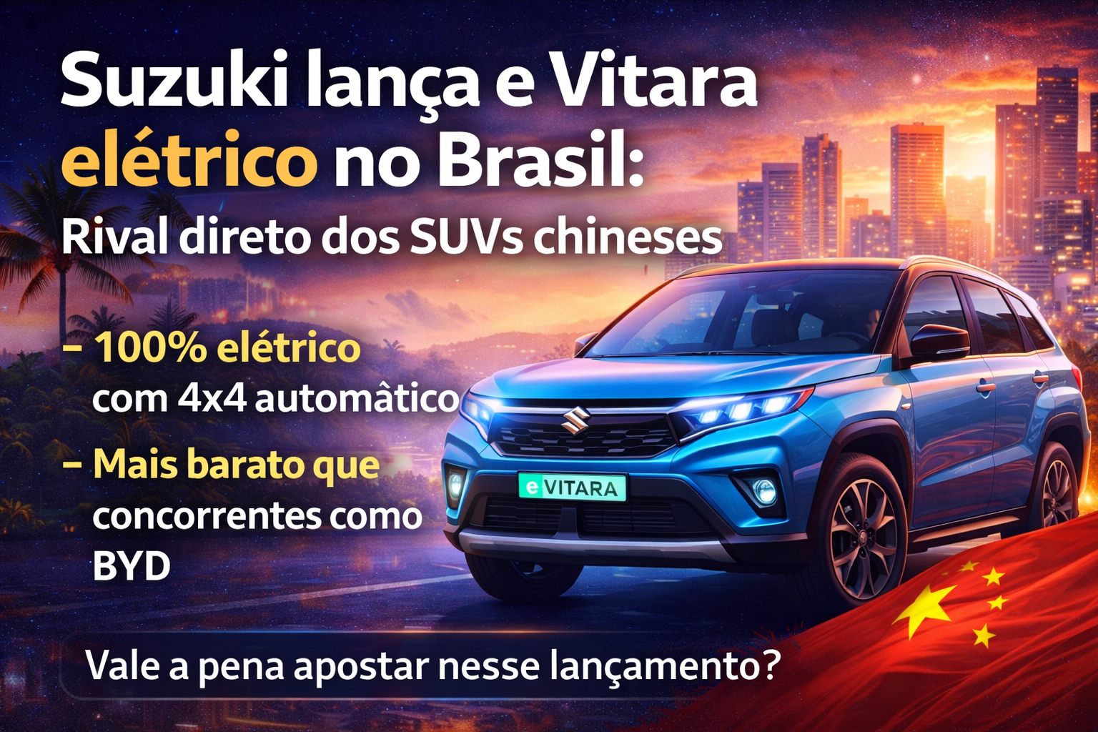 O mercado automotivo brasileiro vem passando por uma transformação significativa, impulsionada pelo crescimento dos veículos elétricos e pela chegada de novas tecnologias. Nesse contexto, a marca japonesa Suzuki surpreendeu ao reforçar sua presença no país com o lançamento do e Vitara, um SUV totalmente elétrico que promete competir diretamente com modelos de destaque.