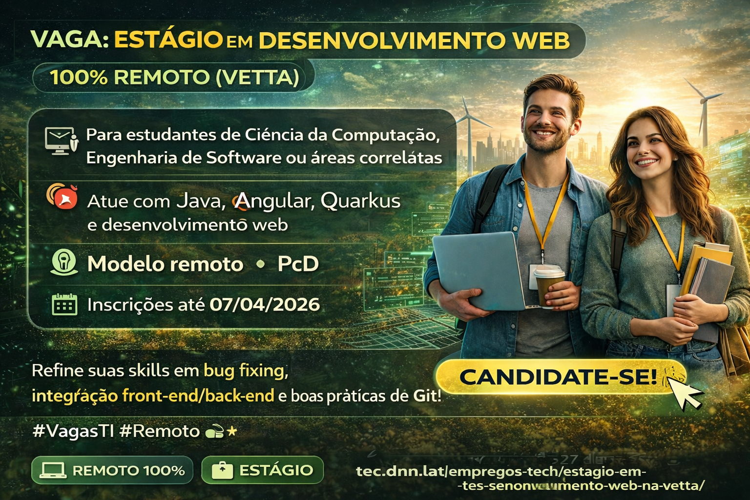 Enquanto muitas oportunidades oferecem experiência técnica, esta vaga agrega também propósito social.
